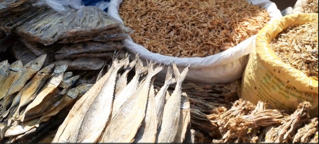 freshly sun dried shrimps, prawns, mackerels, Bombay duck, sardines and squids at a great price